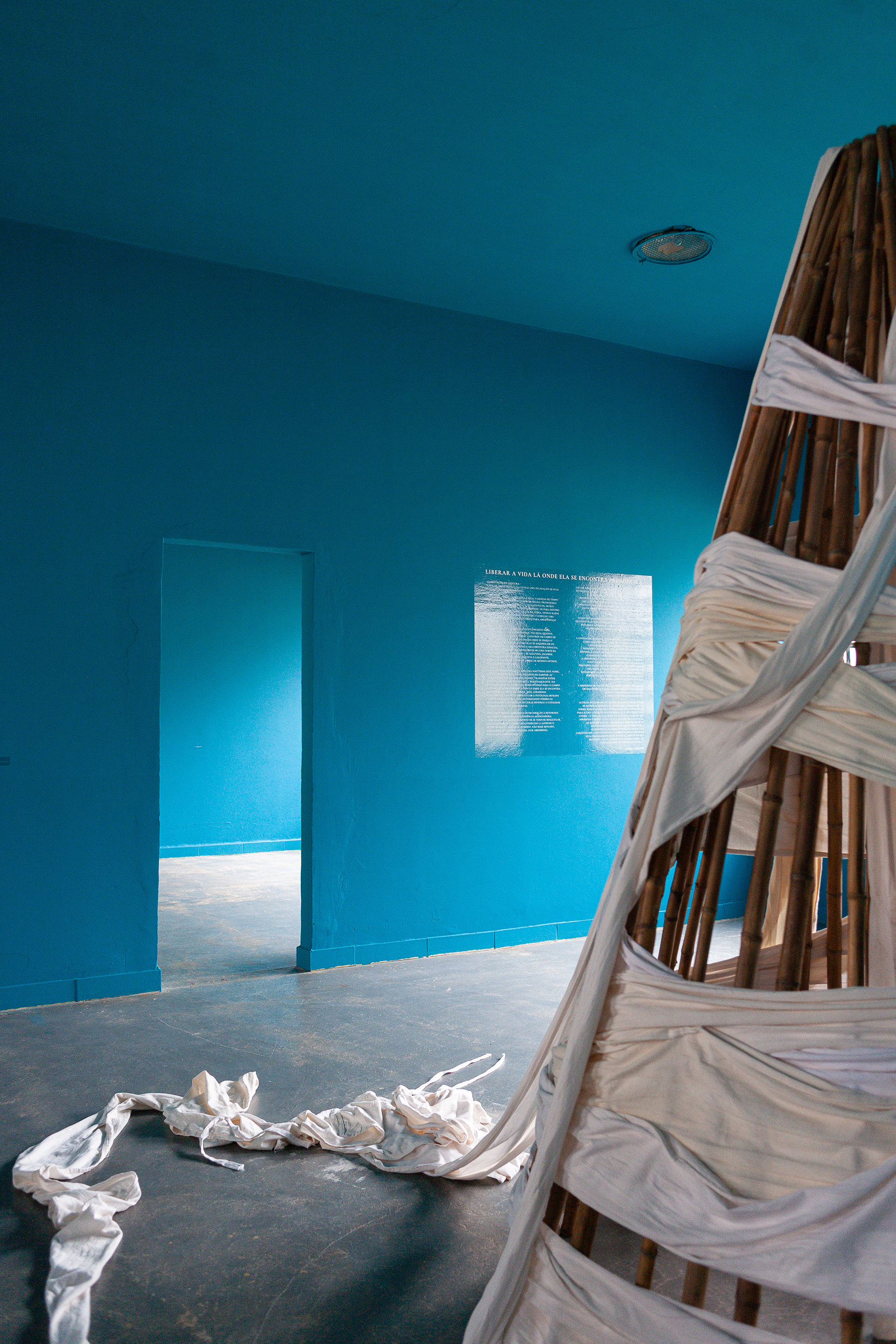 O percurso expositivo escolhido pela artista também nos convida a uma imersão na arquitetura do hospital, colocando-nos diante de uma história que carrega consigo os silêncios e as violências do arquivo. No texto Vênus em Dois Atos, a escritora e acadêmica Saidiya Hartman nos ajuda a pensar o arquivo, que em alguns casos apresenta-se como uma “sentença de morte, um túmulo, uma exibição do corpo violado, um inventário de propriedade, um tratado médico (...) um asterisco na grande narrativa da História”. O que resta à artista, se não revisitar o arquivo? De outra forma, como construir uma outra história que não reproduza a violência e abra o necrotério do arquivo? Perguntas para as quais talvez não haja uma resposta, mas a construção de uma ética de trabalho, uma ética do fazer artístico, uma ética do cuidado.