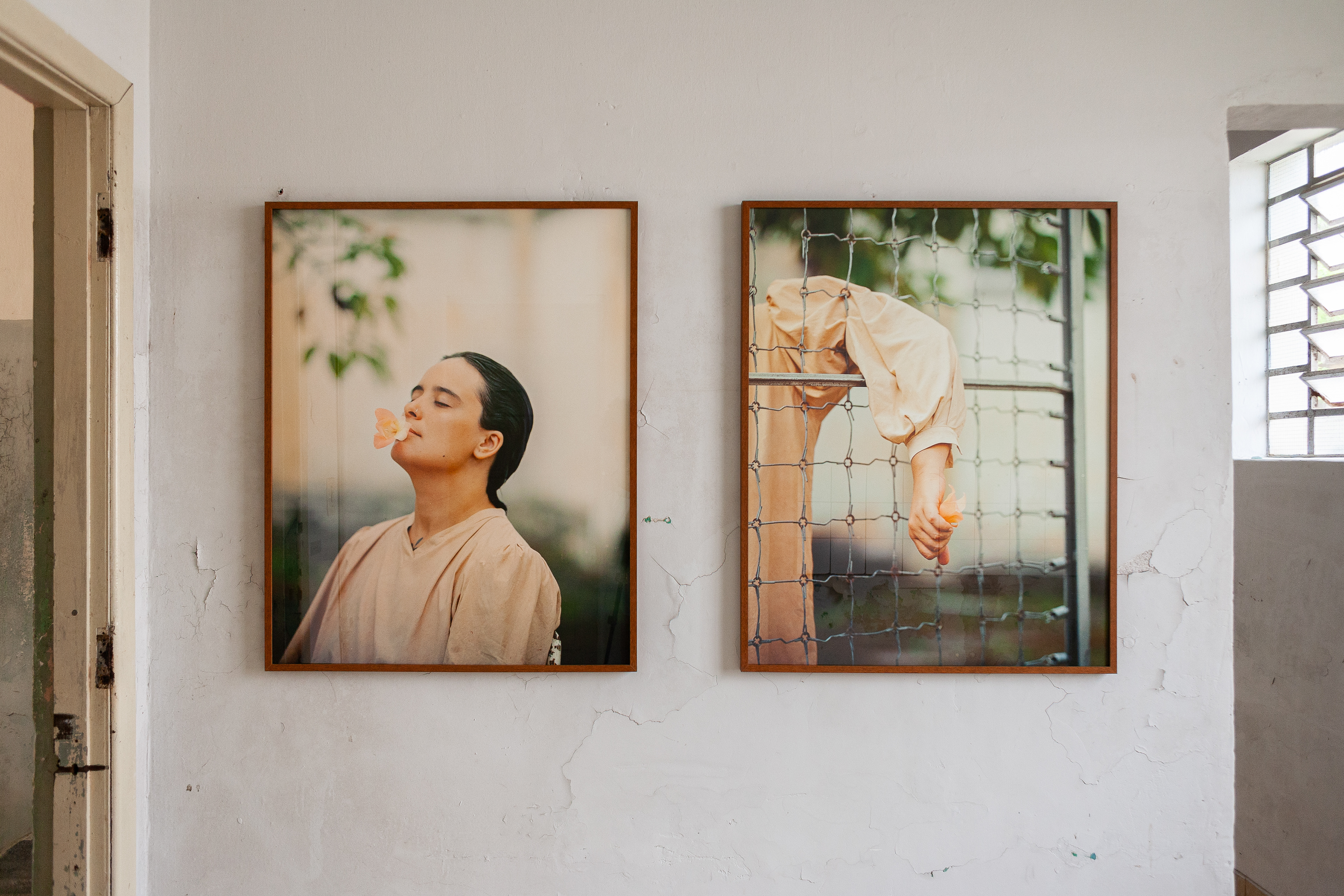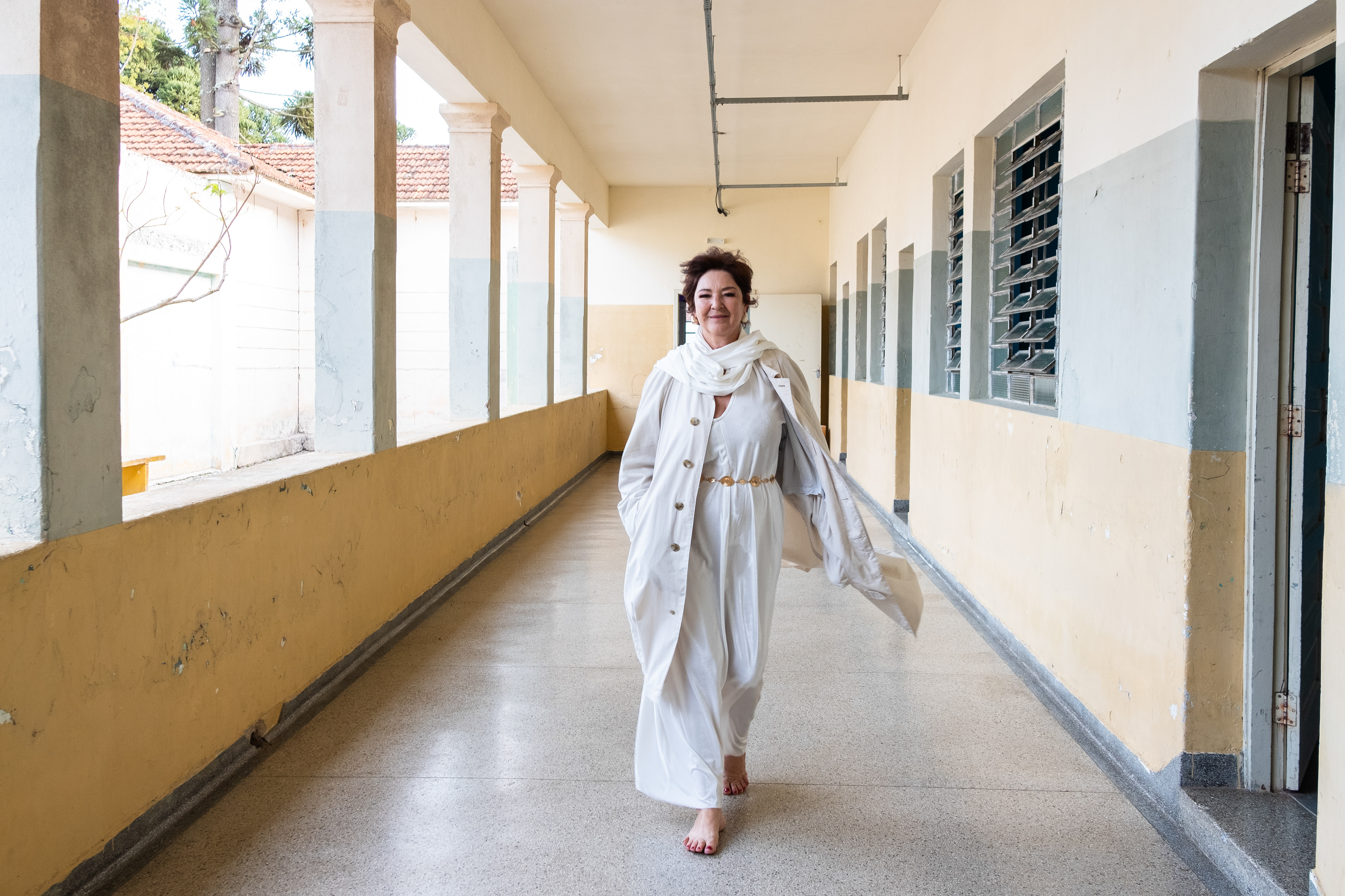 série de 12 fotoperformances feitas com kodak 120 portra 400; fotografada no pátio do hospital. roupas tingidas naturalmente com chá preto, pó de uva, cravo, canela, urucum, aroeira e alecrim.