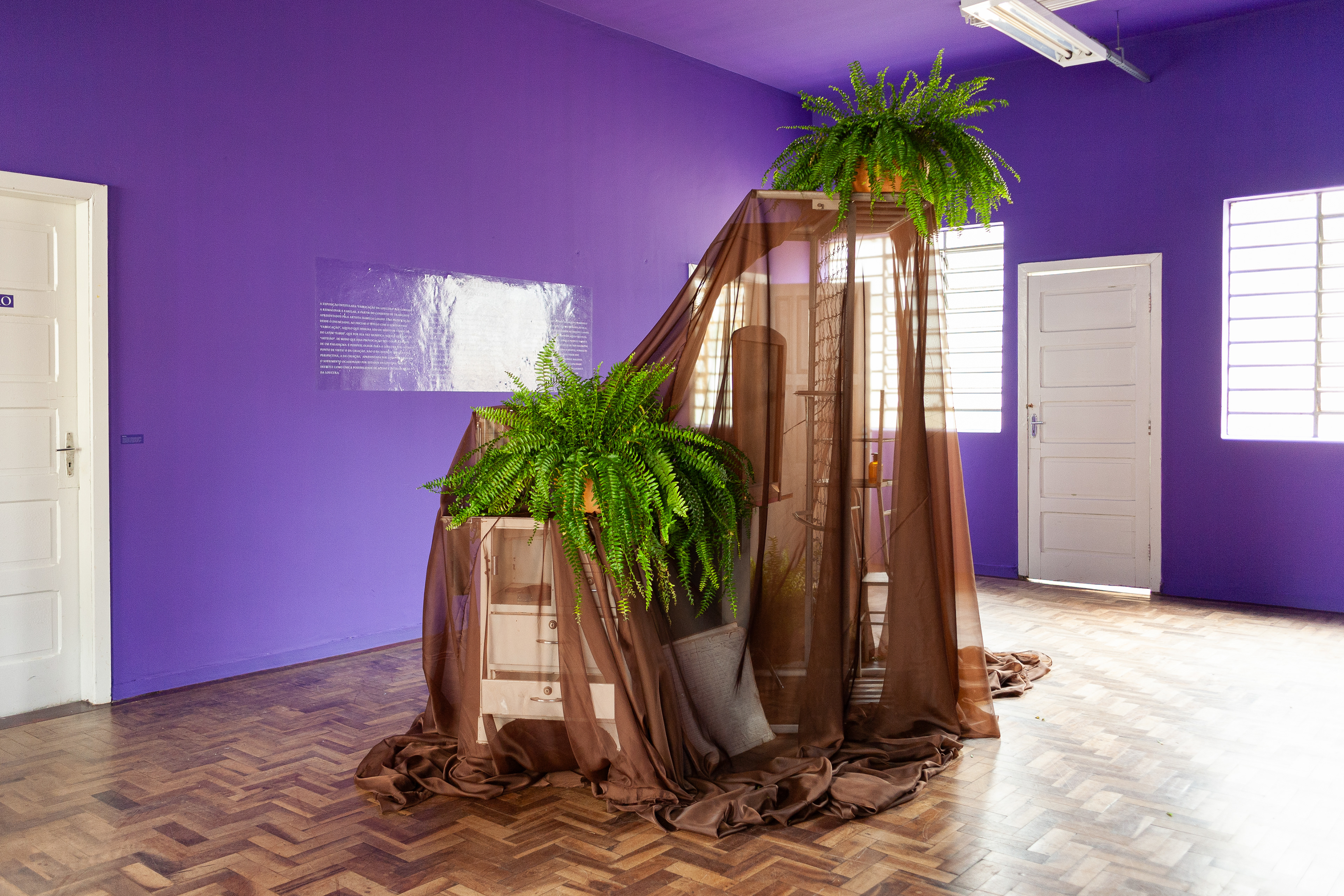 A exposição intitulada “Fabricação da Loucura” nos convida a reimaginar e fabular, a partir do conjunto de trabalhos apresentados pela artista Isabella Lanave. Uma provocação desde o enunciado, ao iniciar o título com o substantivo “Fabricação”, aquilo que designa ato ou efeito de fabricar, do latim “faber”, que por sua vez significa “aquele que faz” ou “artesão”. De modo que essa provocação nos coloca diante de um paradigma: é possível olhar para a loucura por outro ponto de vista? O da criação, não o da doença? Sem que essa perspectiva, a da criação, apresentada por Lanave, abandone o sofrimento ocasionado por estados da loucura, mas o destitui como única possibilidade de acesso e interlocução da loucura.